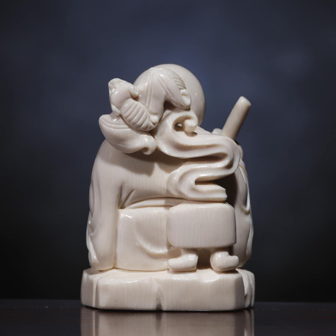 猛犸象牙《小书童》细节刻画生动活泼,线条灵动俏皮,整个形象活灵活现,灵性十足!小书童,奋发图强,背有蝙蝠落下,寓意福气满满、事事顺利。