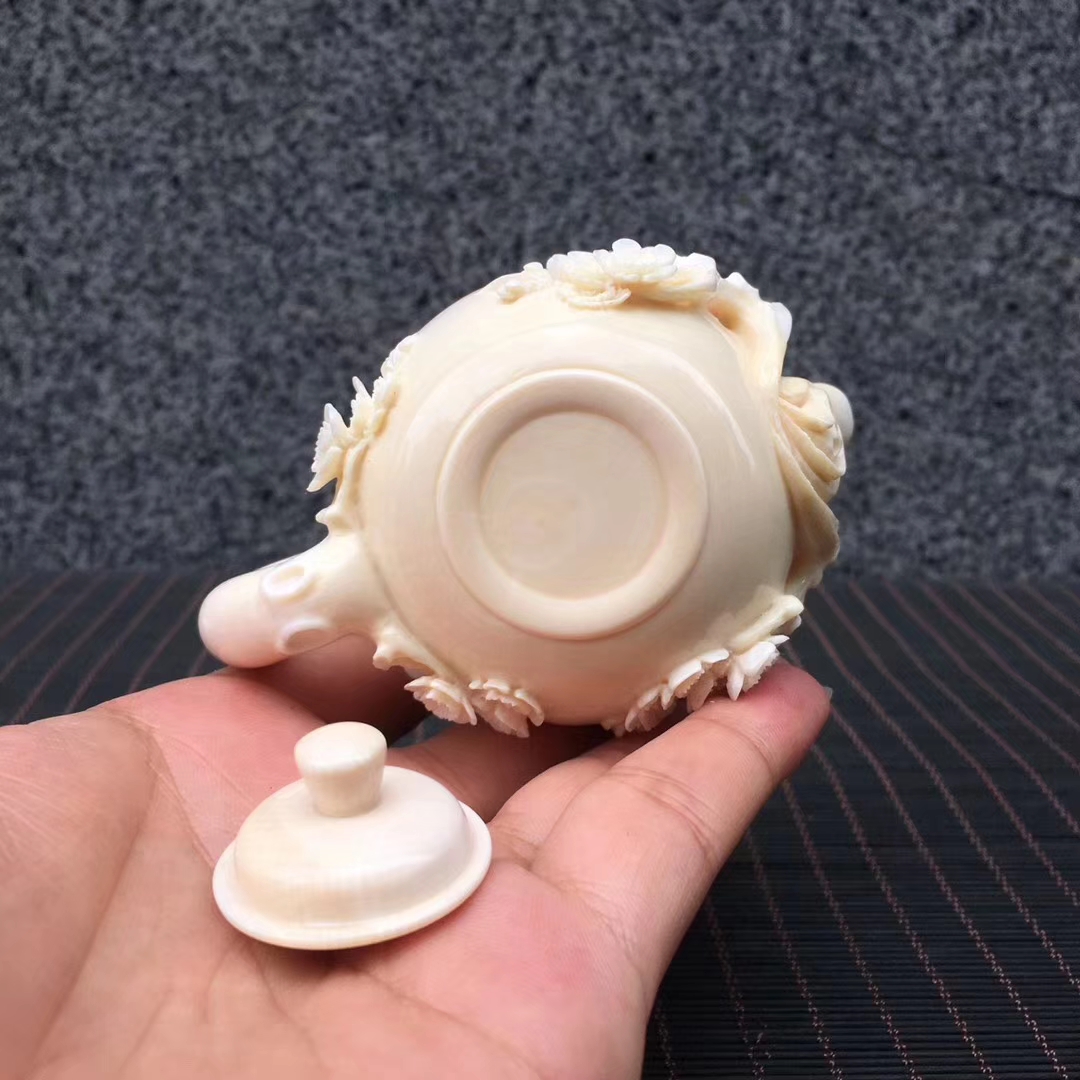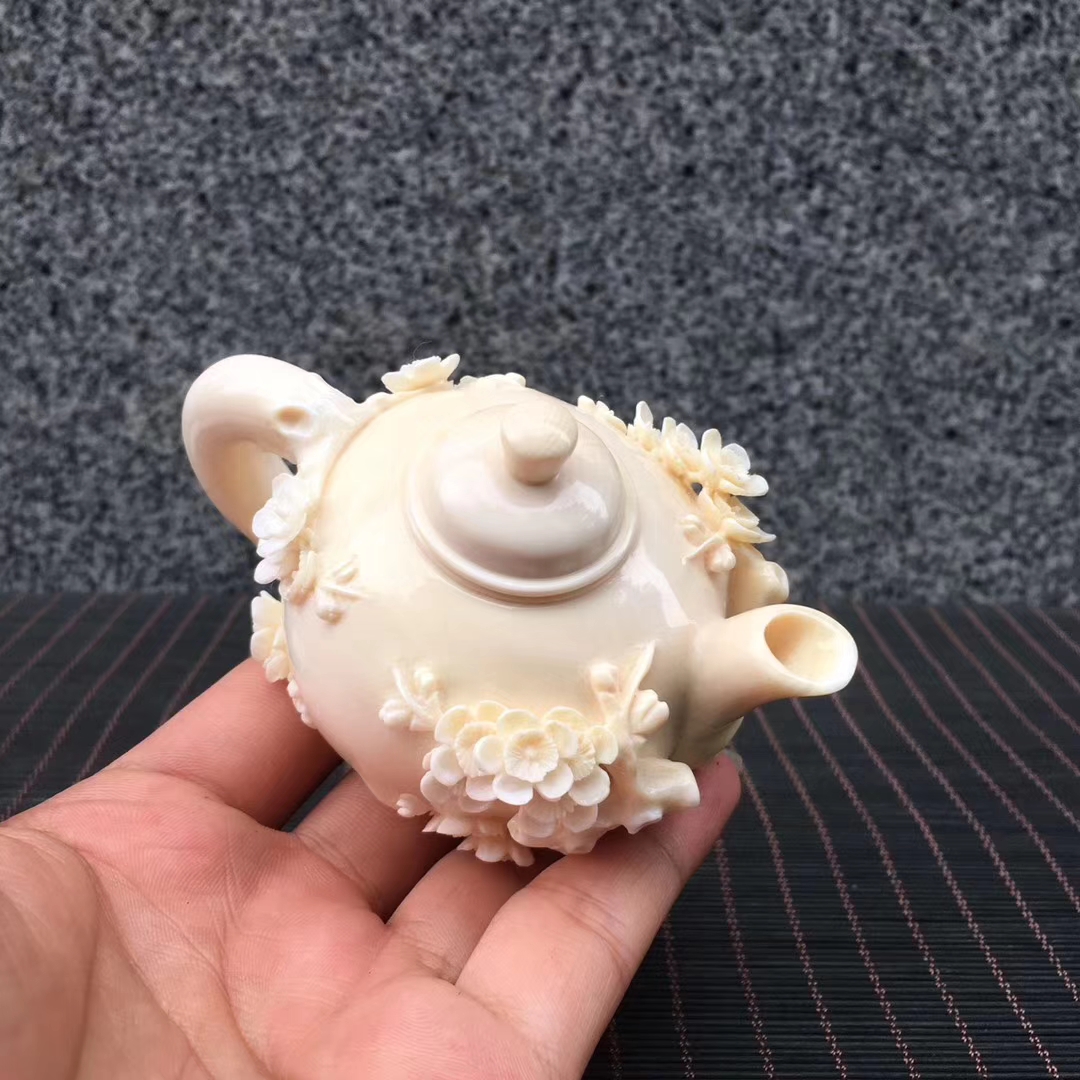 猛犸象牙精品冰料梅花茶壶,高雅之器。极具特色摆件创意收藏!
